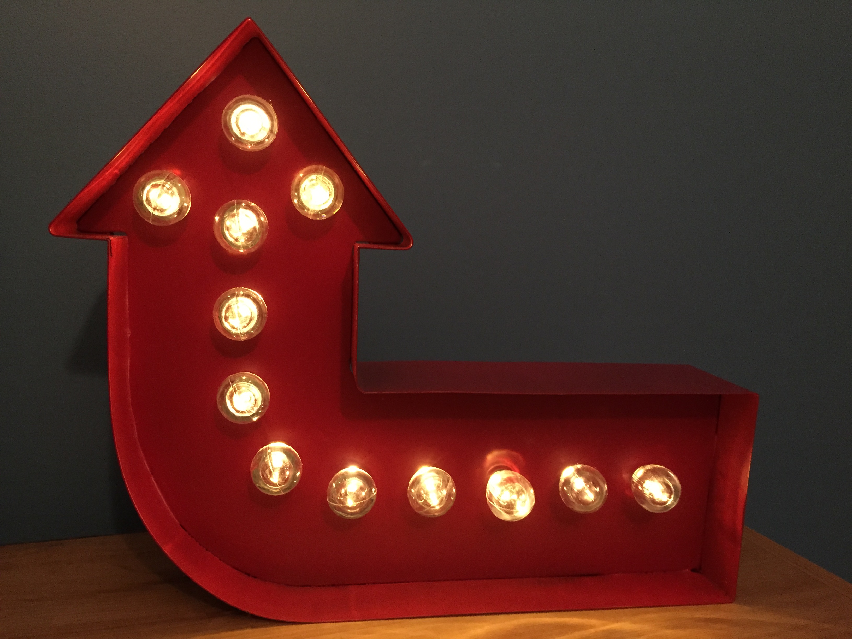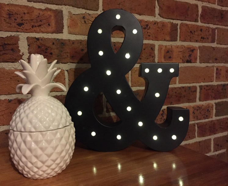 Then I went on a lighting binge after my youngest son was having issues with his bedroom being so dark when he went to bed. This gorgeous arrow lamp below has put his little mind at ease. It looks cool turned on and off. My other son also benefited from the little trip with a new lamp for his room as well, only because they were so cheap and the colours available are so on trend. Then…. our lounge room benefited, what can I say?