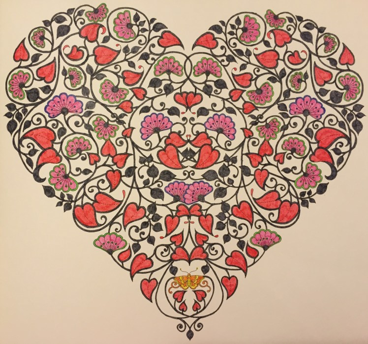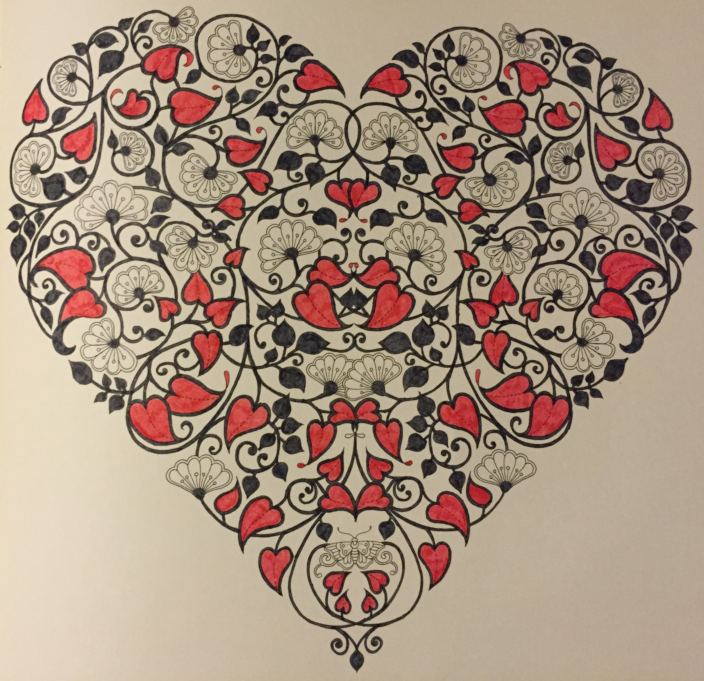 In between napping and sneezing, my first picture was complete. And now for the excuses… It’s not a finished piece I love, nor is it spectacular but it is mine and I enjoyed every moment of colouring through the flu. The moment you realise you’ve made an incorrect colour choice and it’s not coming together how you imagined, is disappointing. There’s no backspace or undo button or magic eraser. The pictures continually evolve and there’s something nice about leaving some of the outline uncoloured if you feel the urge.